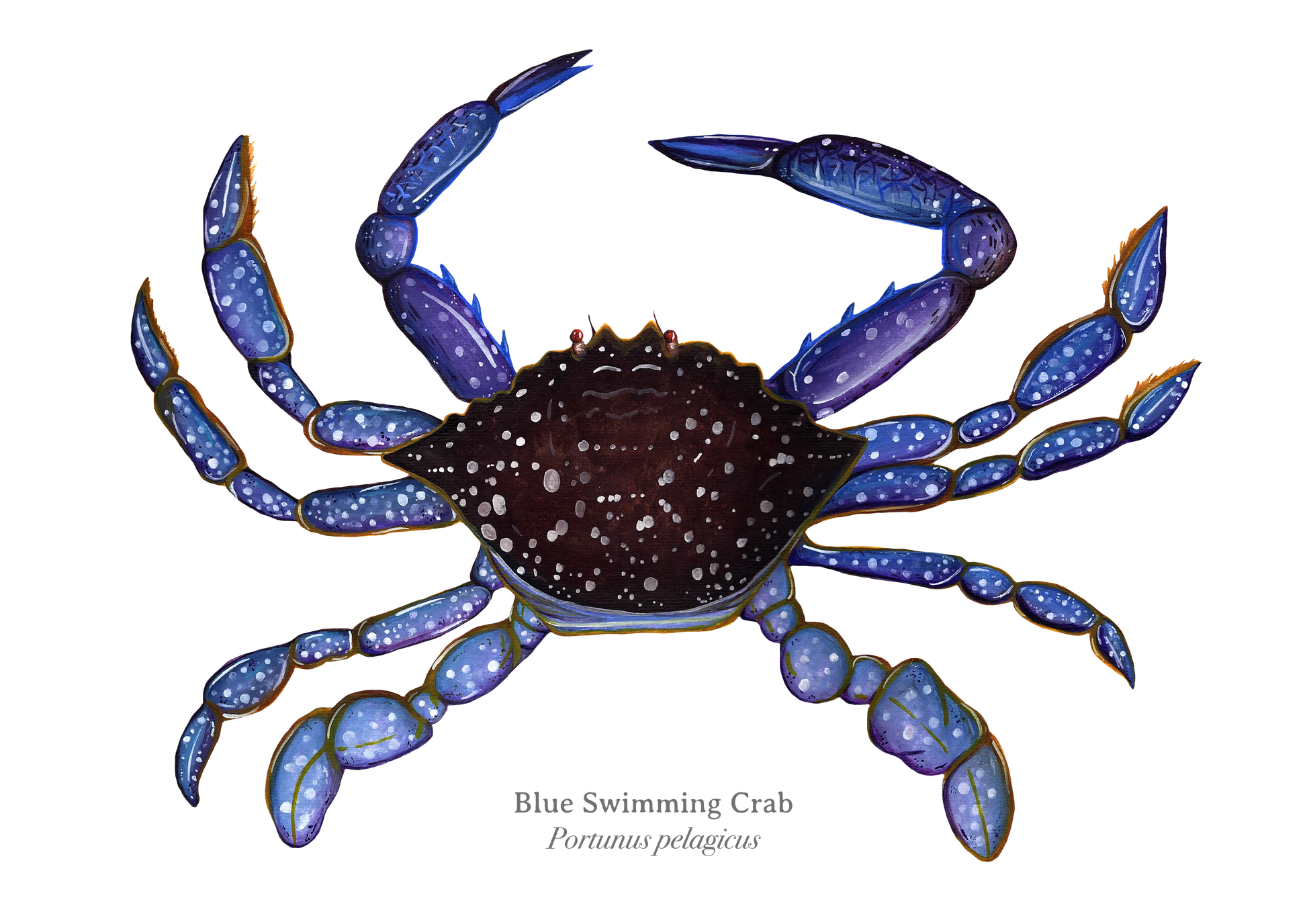 A fine art print of my original Blue Swimming Crab painting. Printed on 320gsm Hahnemulhe paper.