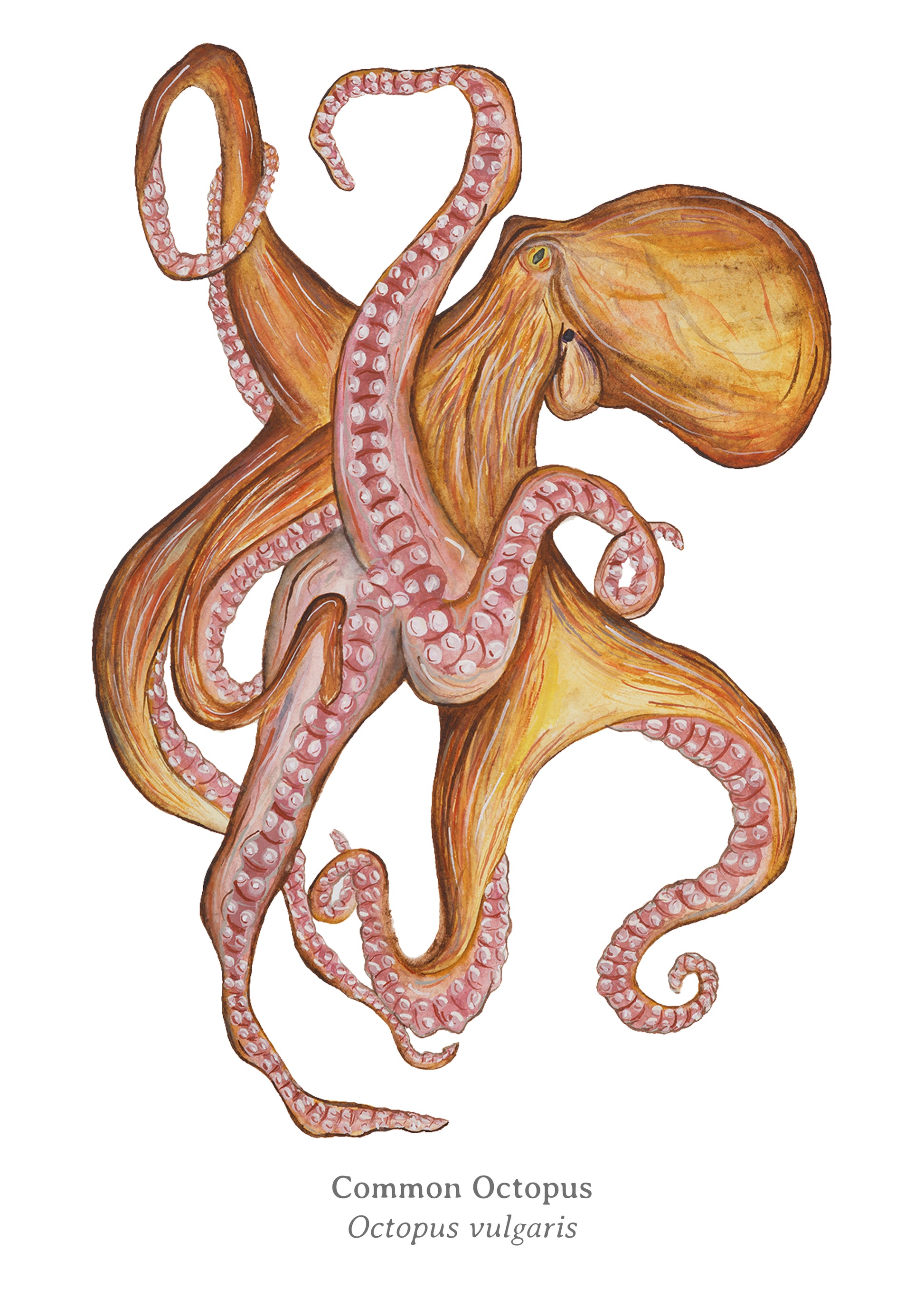 A fine art print featuring my original Common Octopus. Perfect for every ocean lover! Printed on 320gsm Hahnemulhe paper.