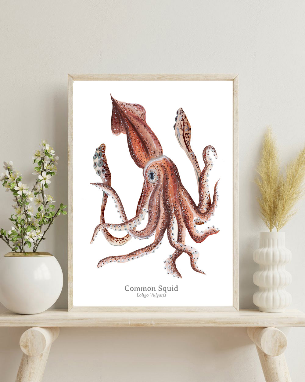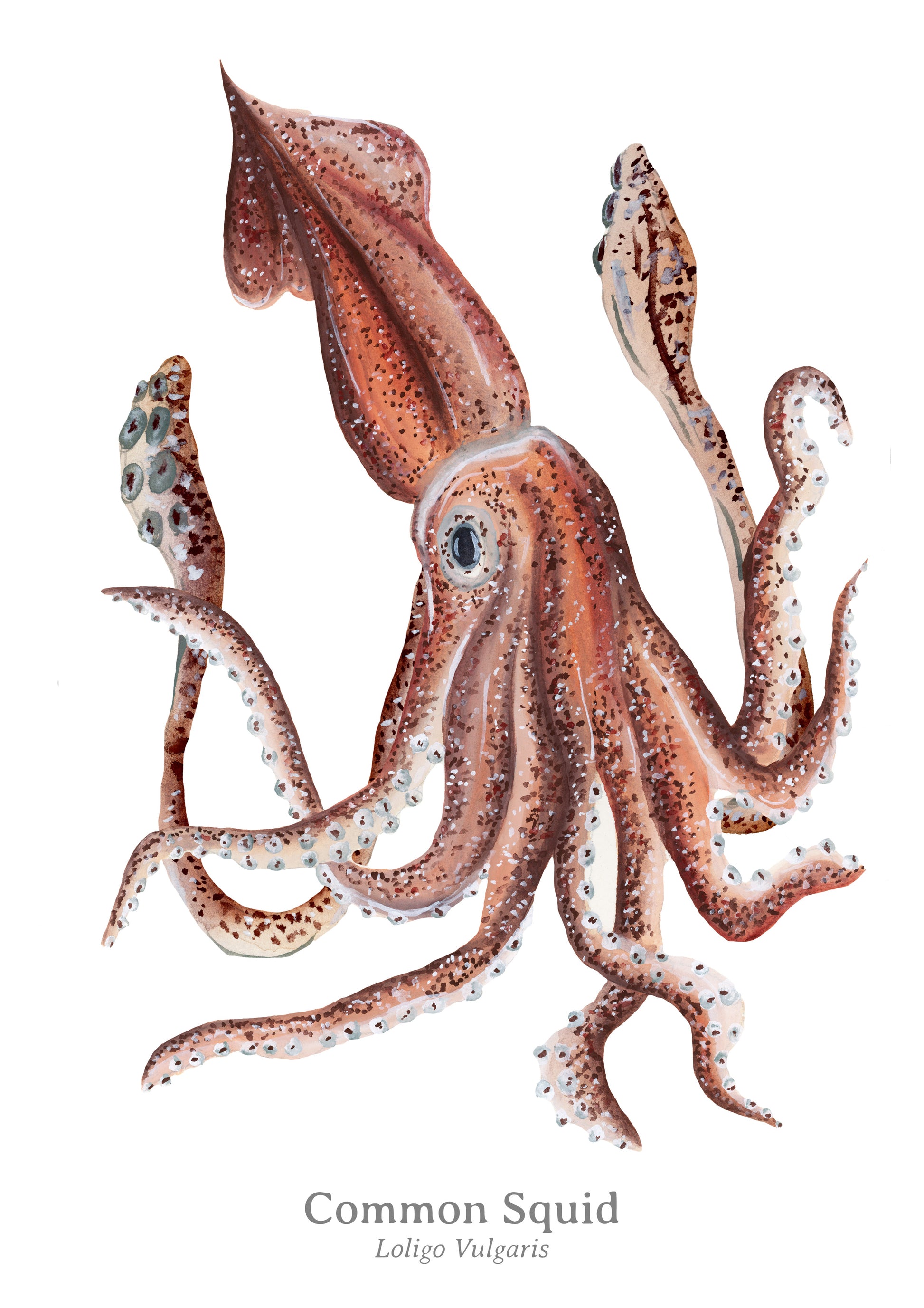 A fine art print of my original common squid painting. Printed on 320gsm Hahnemulhe paper.