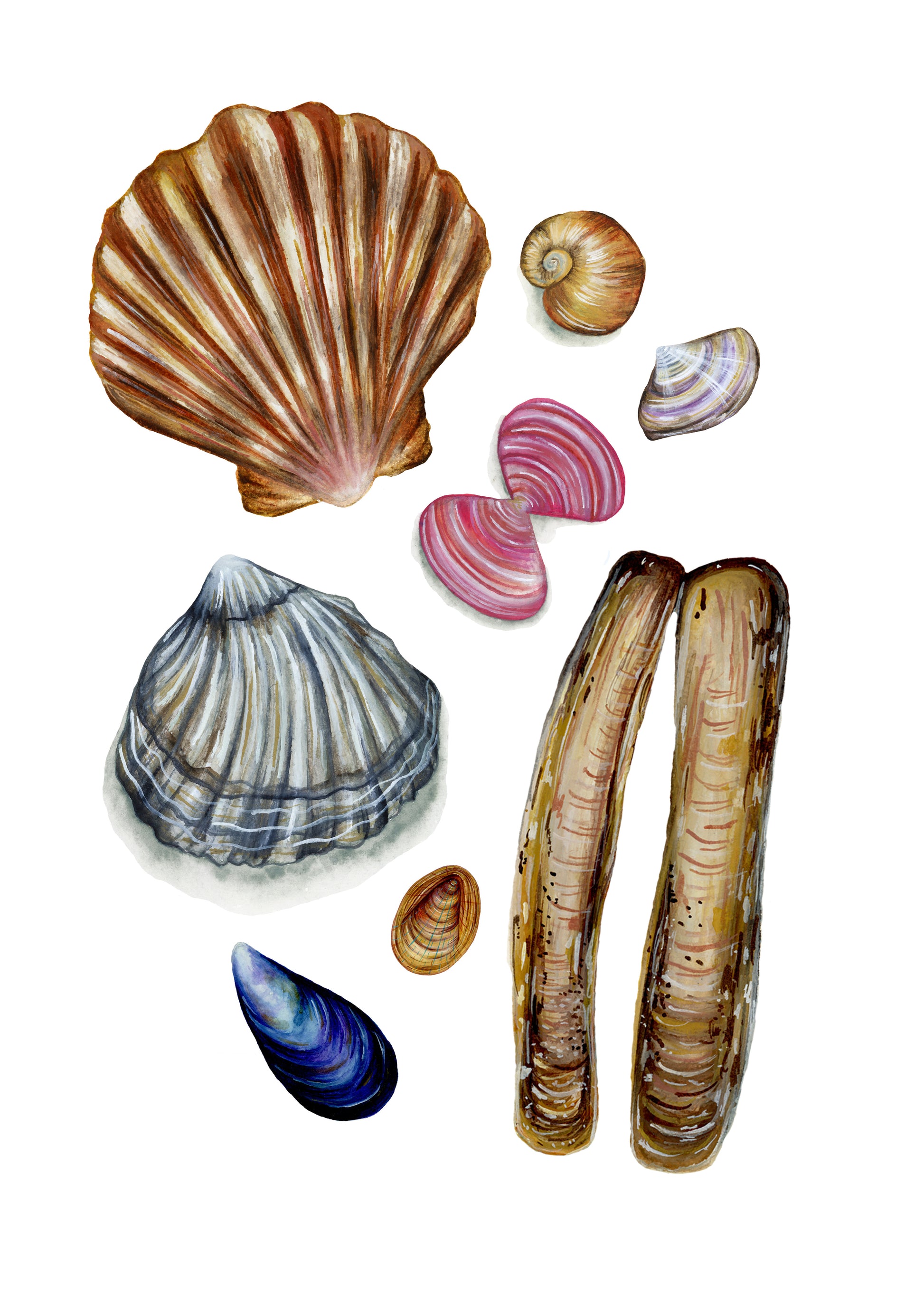 A fine art print featuring a range of my original Cornish shell paintings. For every shell collector and beachcombing lover. Printed on 320gsm Hahnemulhe paper.