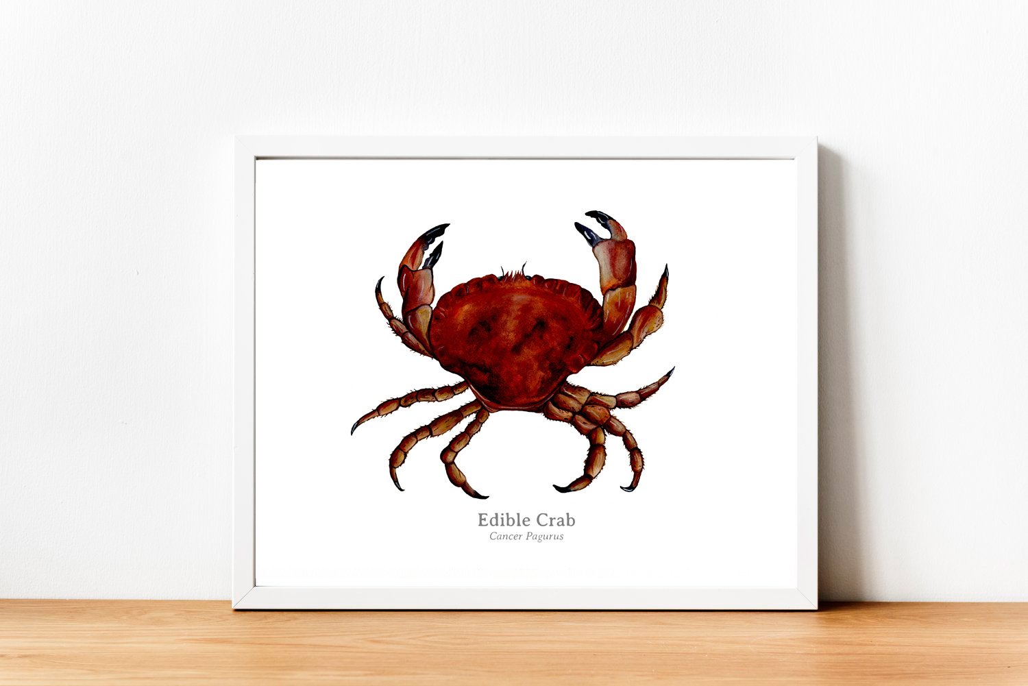 A fine art print of my original edible crab painting. Printed on 320gsm Hahnemulhe paper.