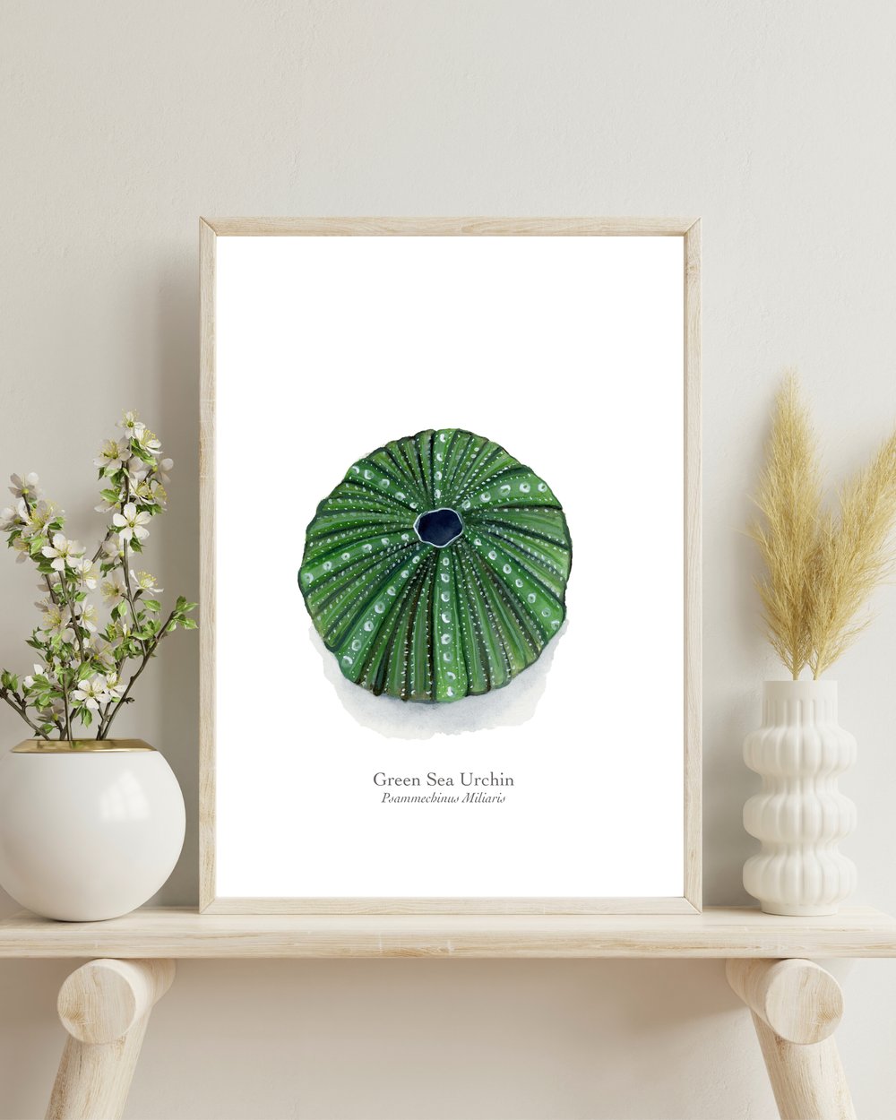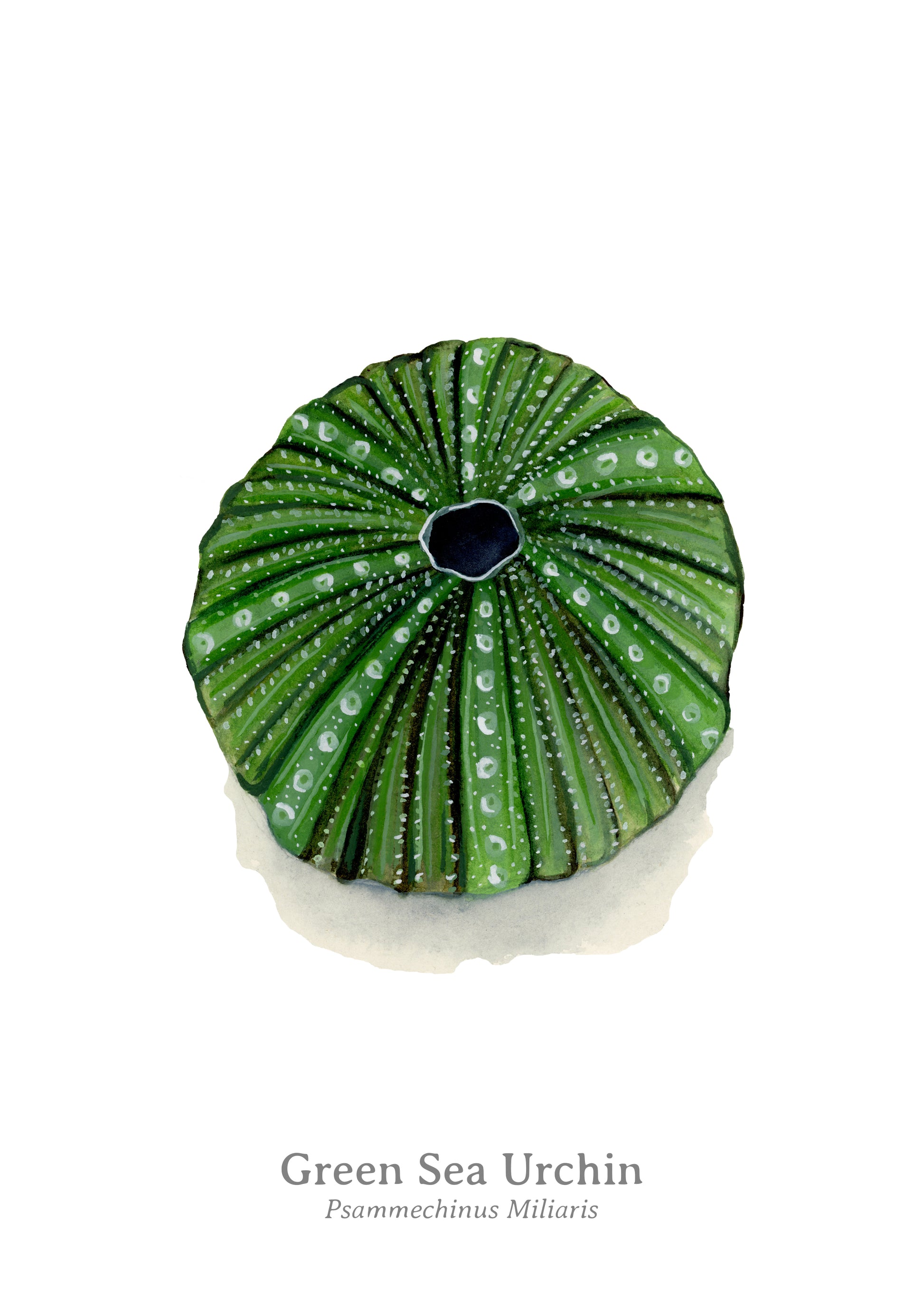 A fine art print of my original green sea urchin painting. Printed on 320gsm Hahnemulhe paper.