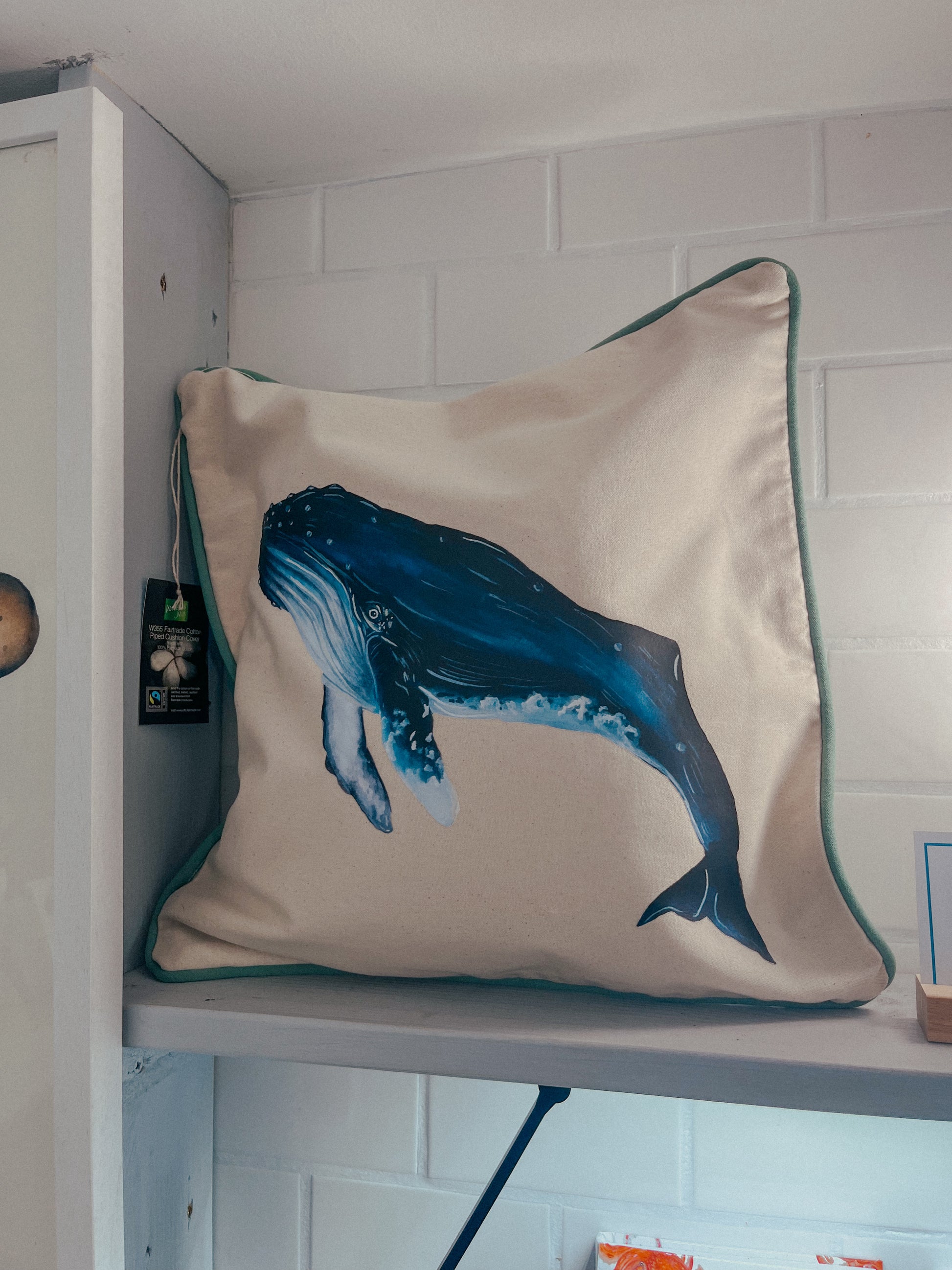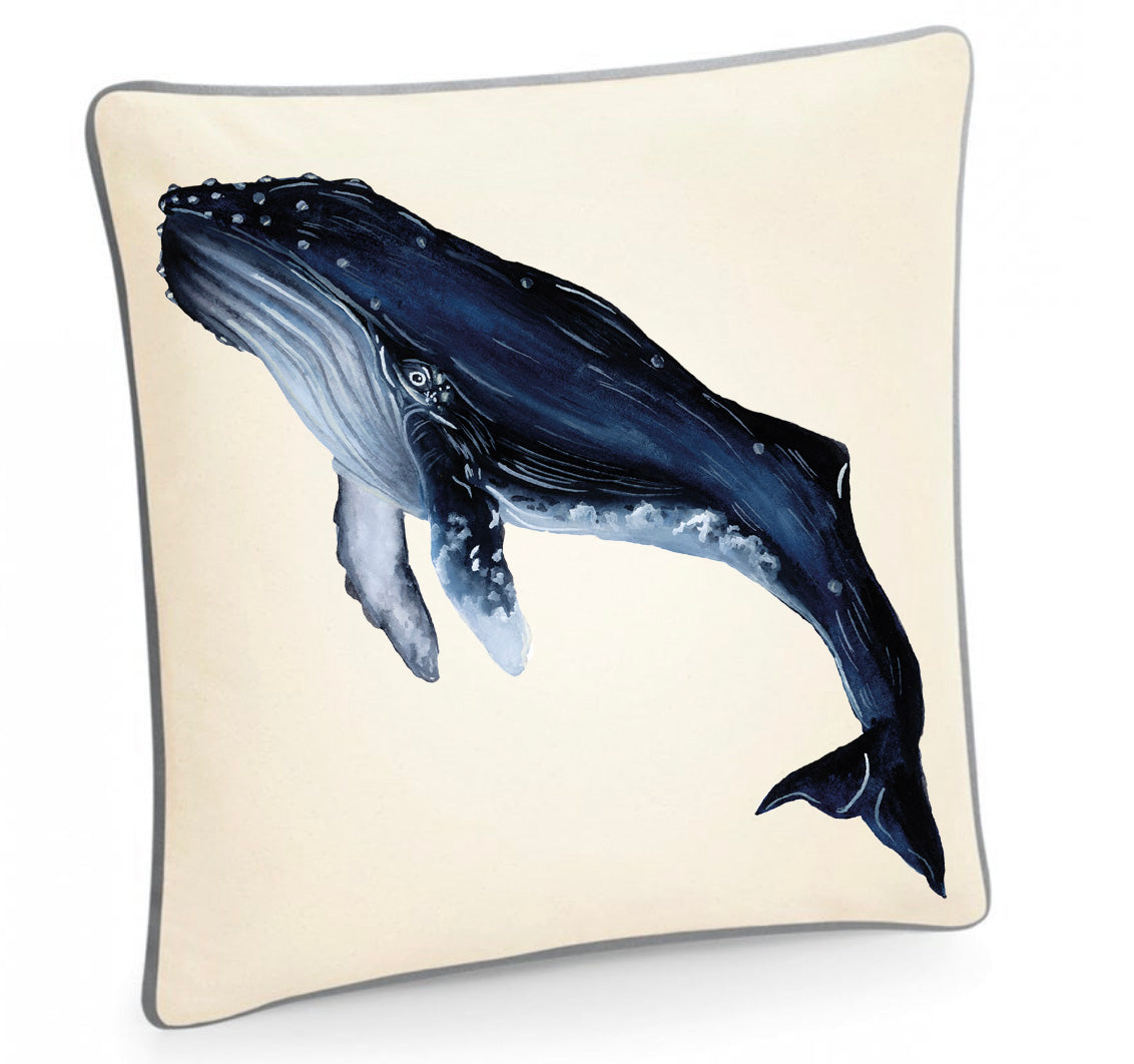 Whale lovers, this is the perfect new addition to your home! Introducing the Humpback Whale cushion cover. Featuring a print of my hand-illustrated Humpback Whale on a cotton piped edge cushion cover.