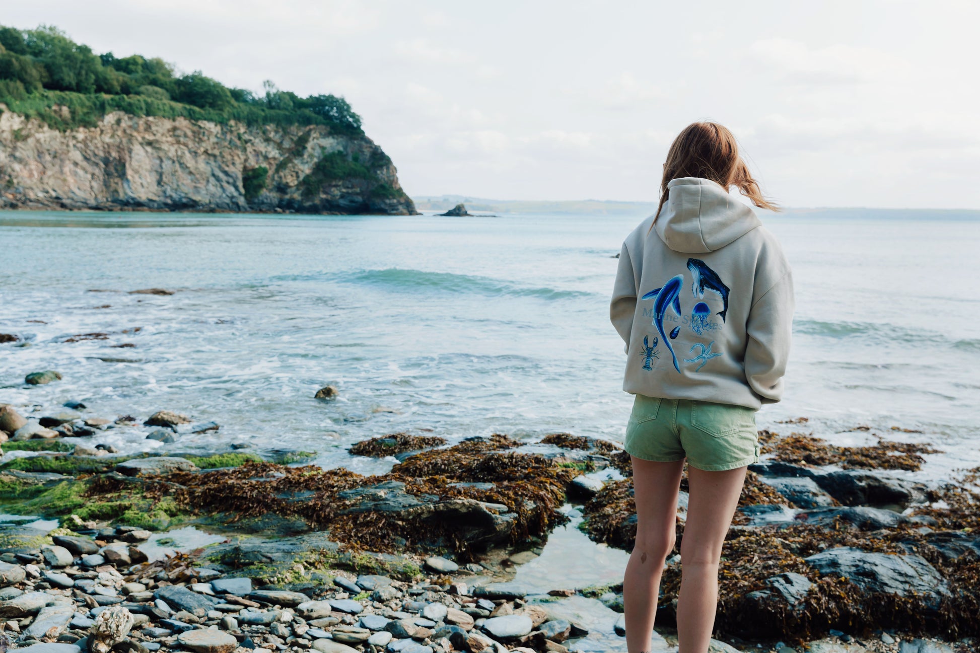 Ocean lover’s this is the perfect hoody for you! Designed with the ocean’s favourite colour palette, a beautiful array of blues on a natural stone hoody. Taking inspiration from vintage wildlife posters, to bring a modern wearable piece of art. This hoody features six of Rachael’s original watercolour paintings, including the Humpback Whale, Blue Shark, Common Mussel, Spiny Starfish, Common Lobster and Blue Jelly.