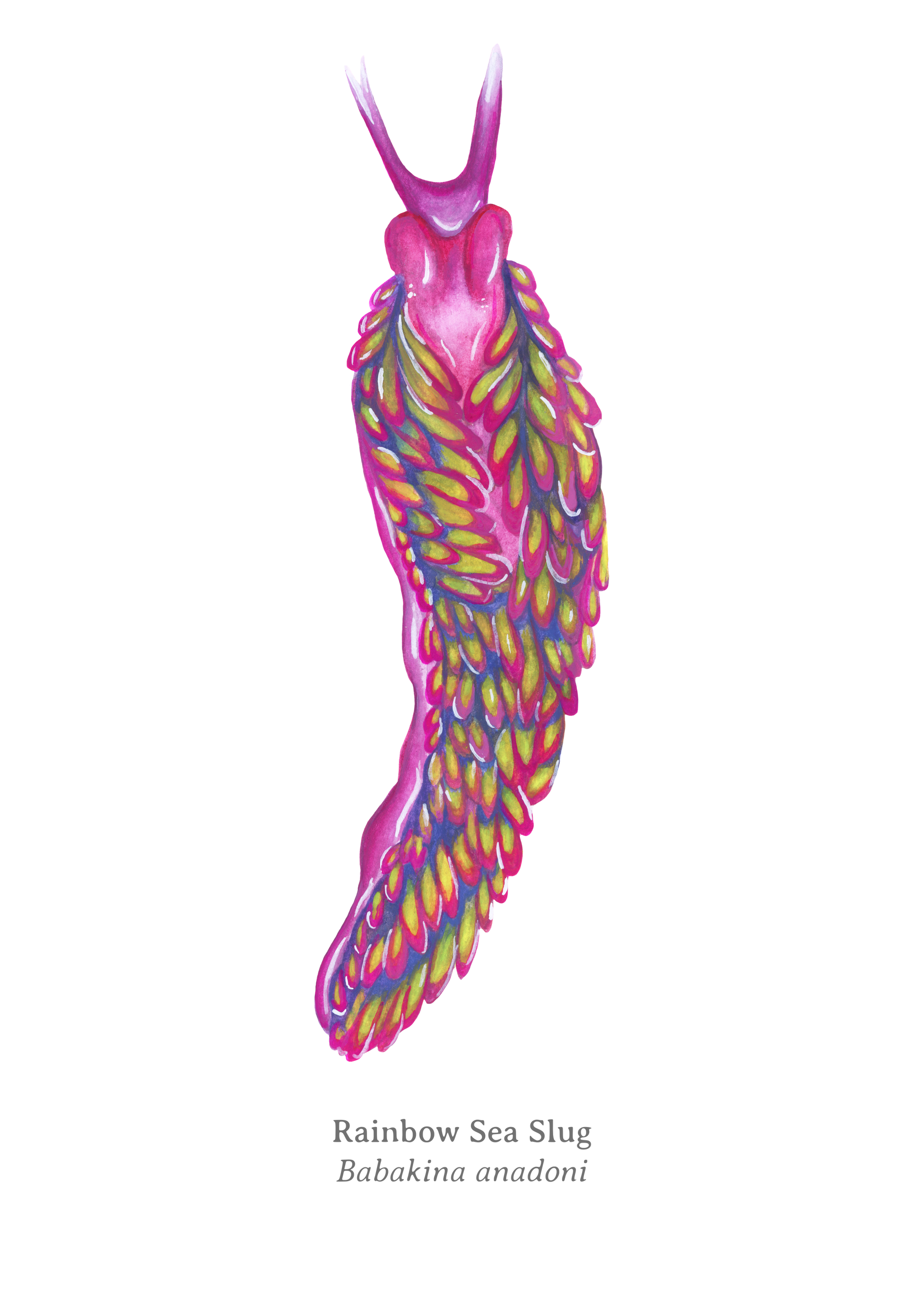 A fine art print of my original Rainbow Sea Slug painting. Printed on 320gsm Hahnemulhe paper.