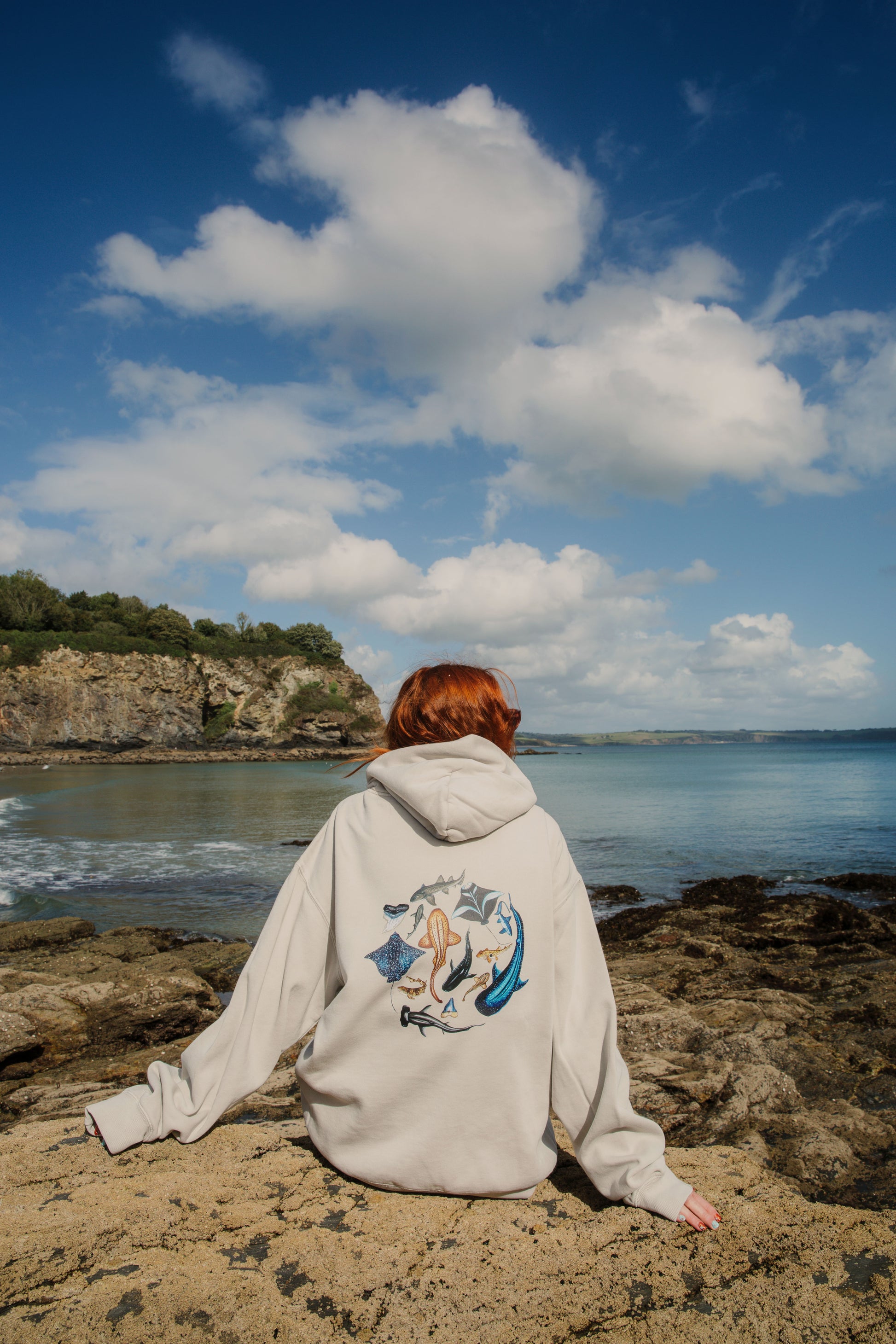 This is the hoodie for shark lovers, a celebration of the incredible diversity of sharks and rays that roam our oceans. From the small but mighty Epaulette and the sleek Small-Spotted Catshark, to the gentle giant Whale Shark, the unmistakable Hammerhead, and the graceful Manta Ray, this design brings them all together in one striking circle.