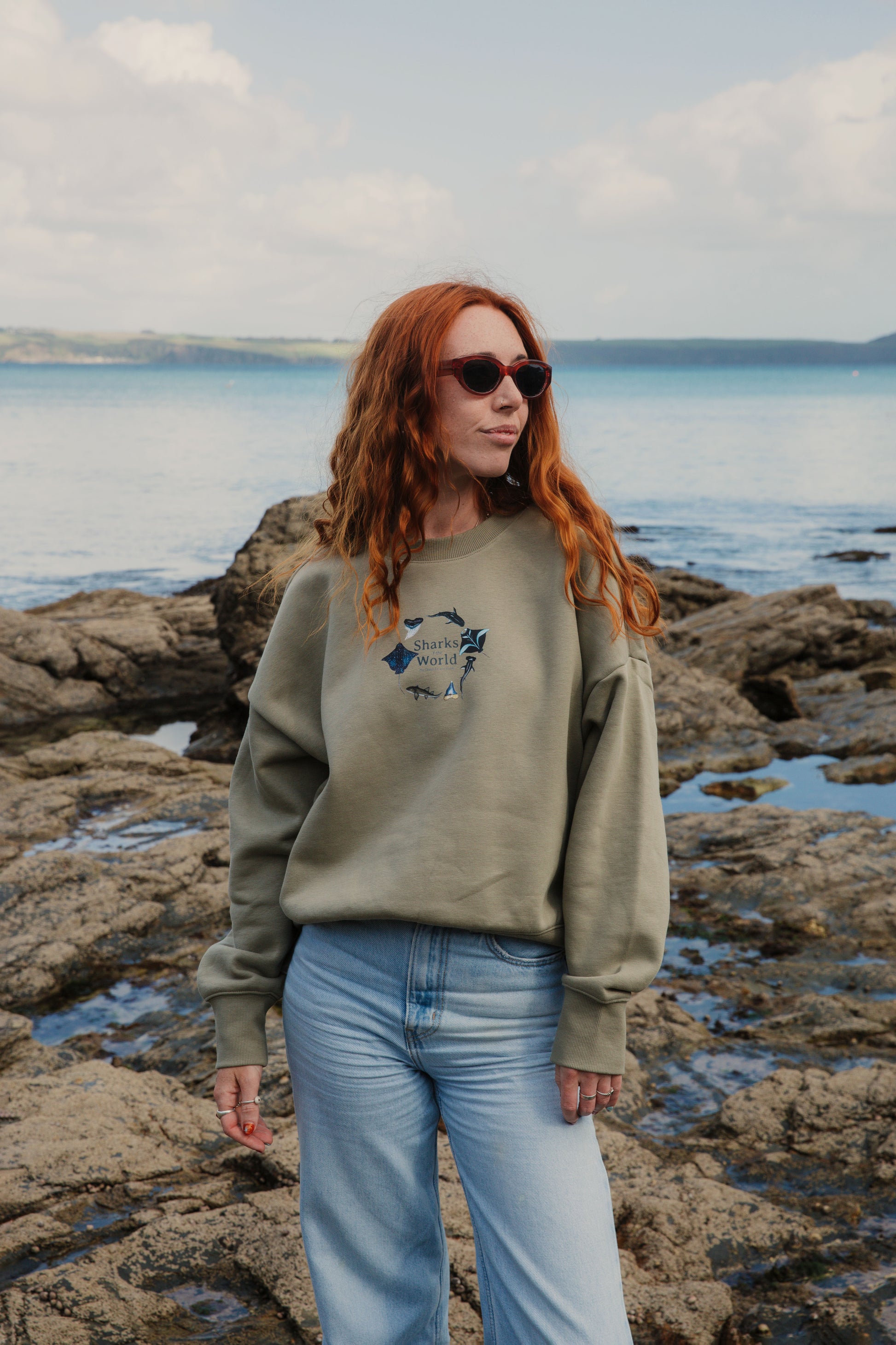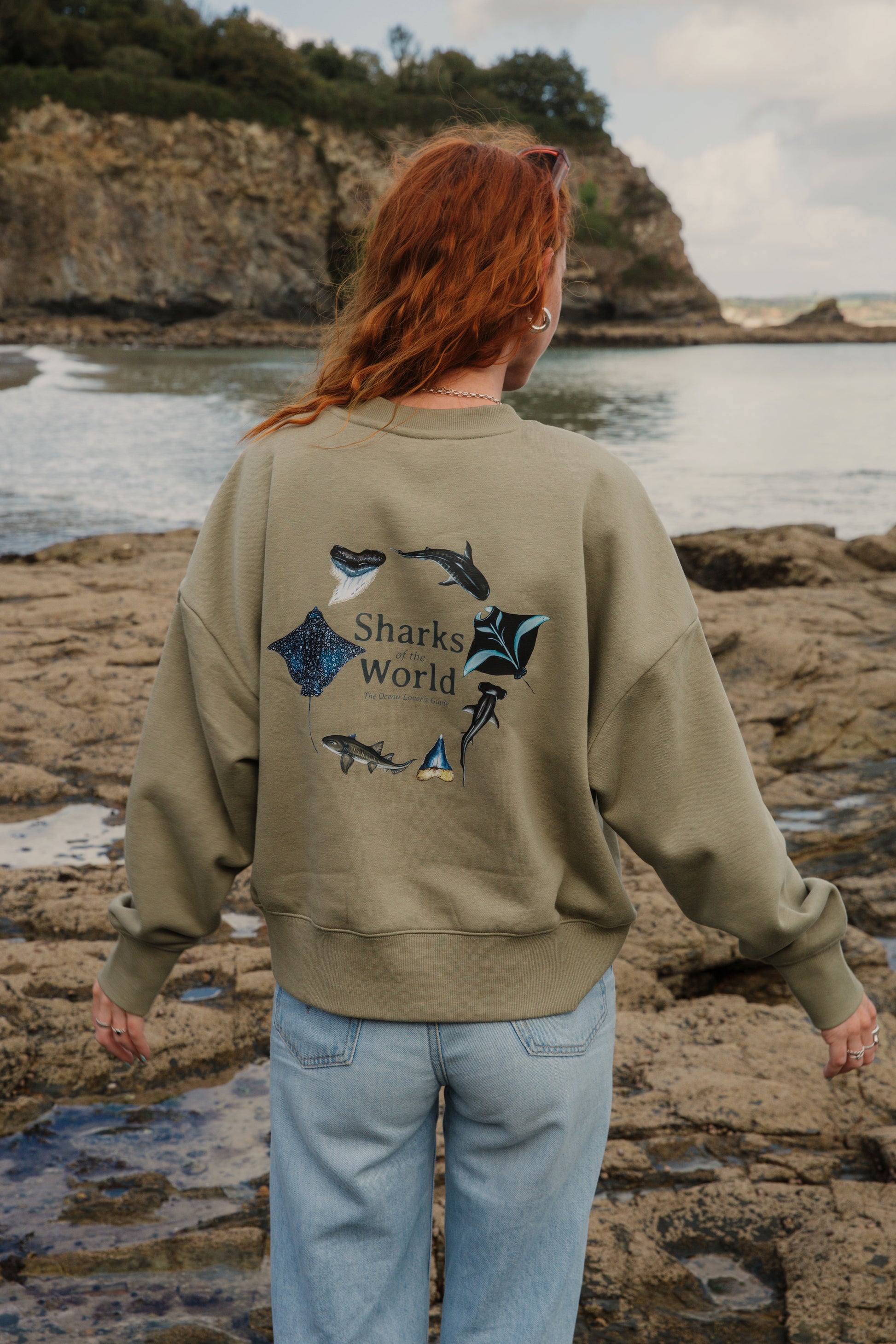 Celebrate the ocean's most extraordinary predators with the Sharks of the World sweater! Featuring hand-painted illustrations of iconic species, from the mighty Hammerhead to the gentle whale shark, to the beautifully patterned Spotted Eagle Ray. This design brings together the beauty and diversity of sharks in one wearable piece of art.