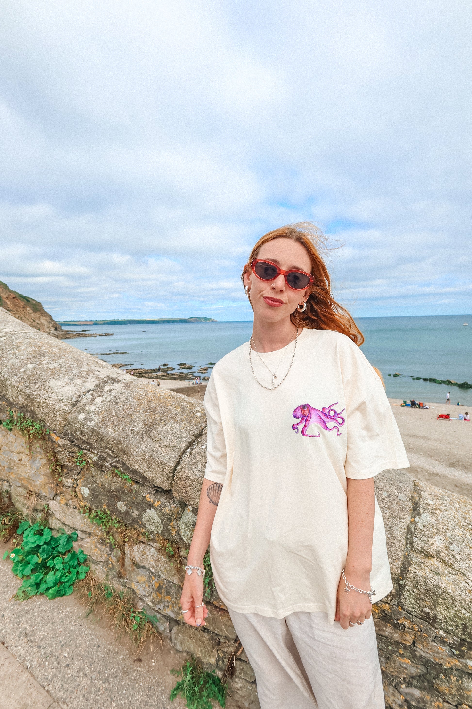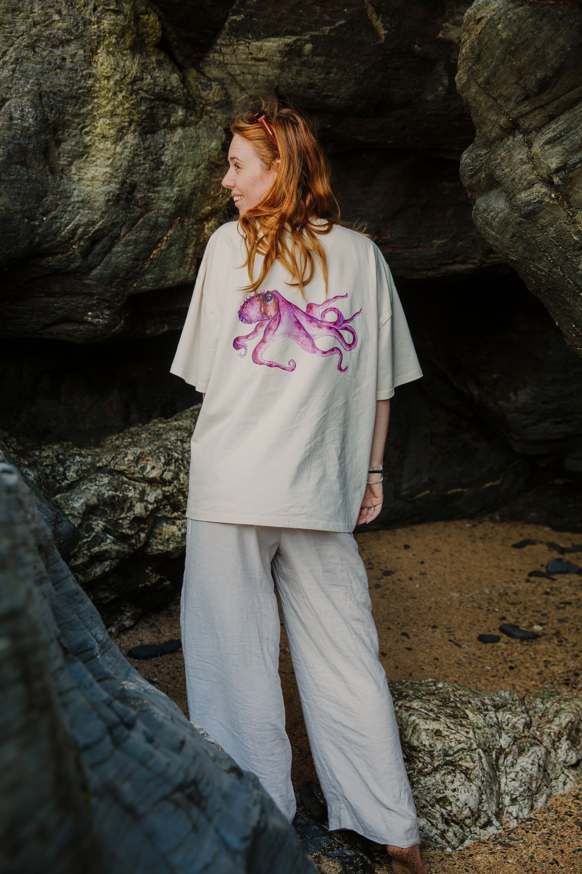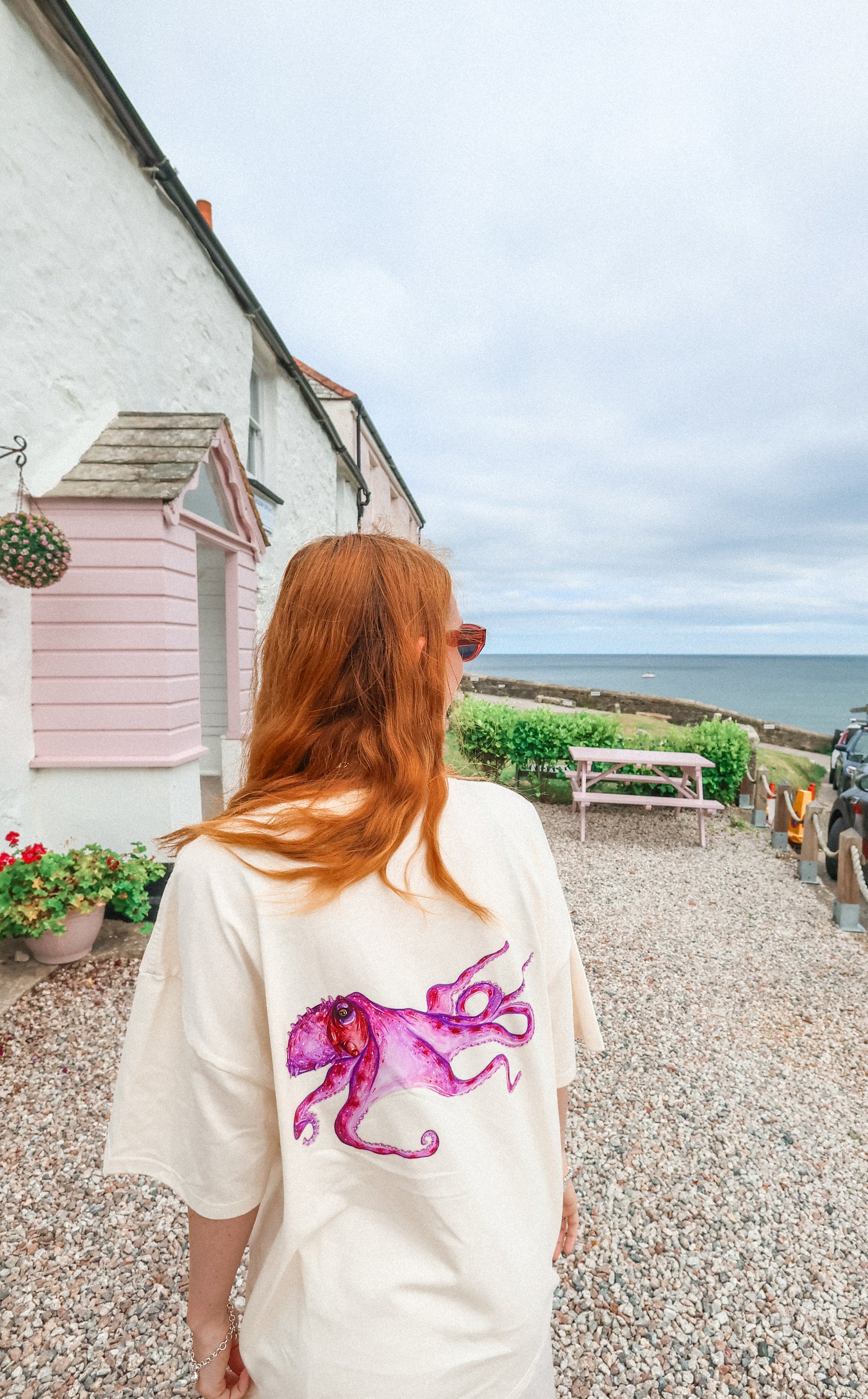Featuring my original watercolour Octopus illustration, with a bold back print and a smaller version of the octopus on the chest. Designed for those who feel most at home by the sea.