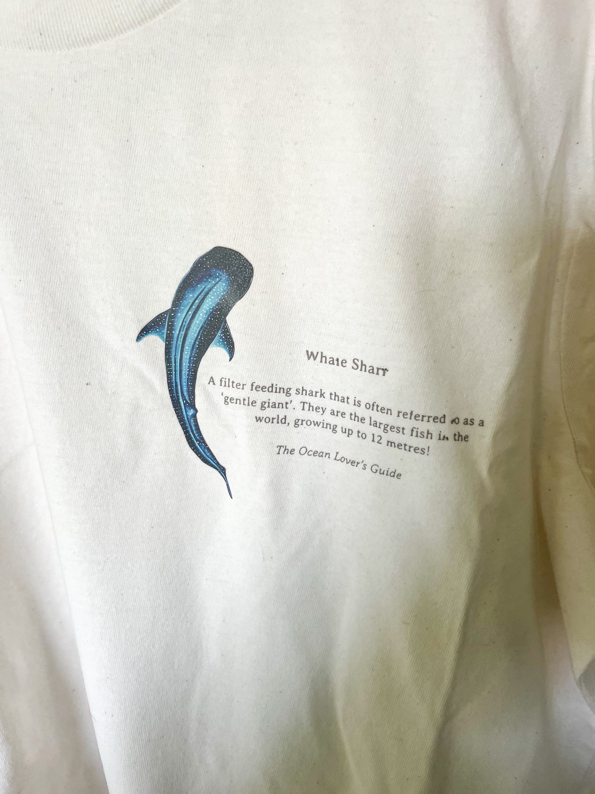 The perfect t-shirt for any shark lover out there! Featuring my Whale Shark painting with a striking back print. Paired with a subtle tiny shark on the front, alongside a whale shark fun fact.